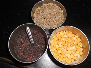 2. add cumin seeds, gram dal & curry leaves and fry well.